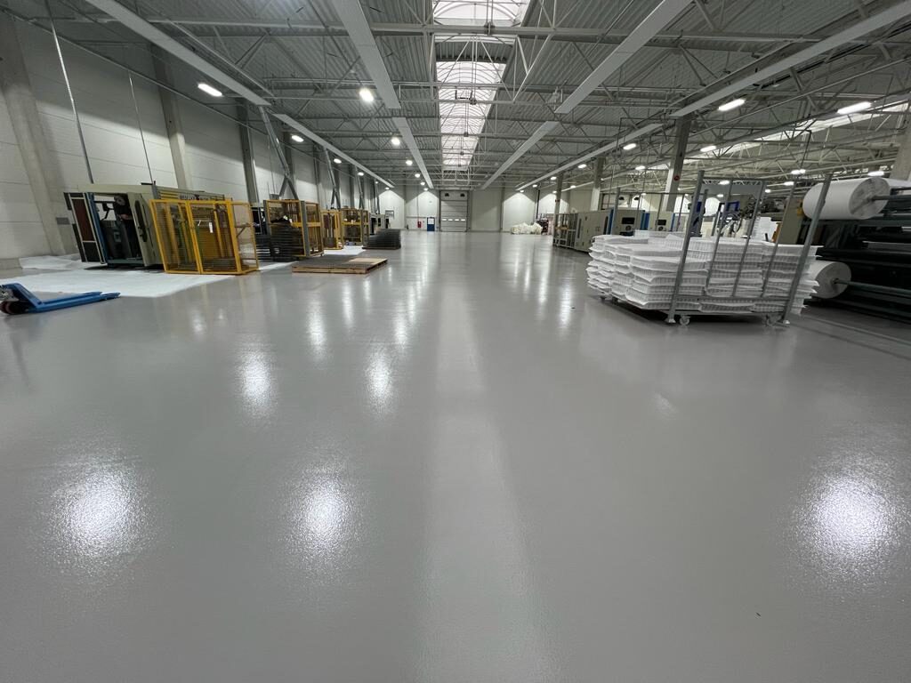 Odporność na ścieranie i obciążenia mechaniczne sprawia, że posadzki żywiczne nadają się idealnie do wszelkich obiektów przemysłowych, takich jak hale produkcyjne.